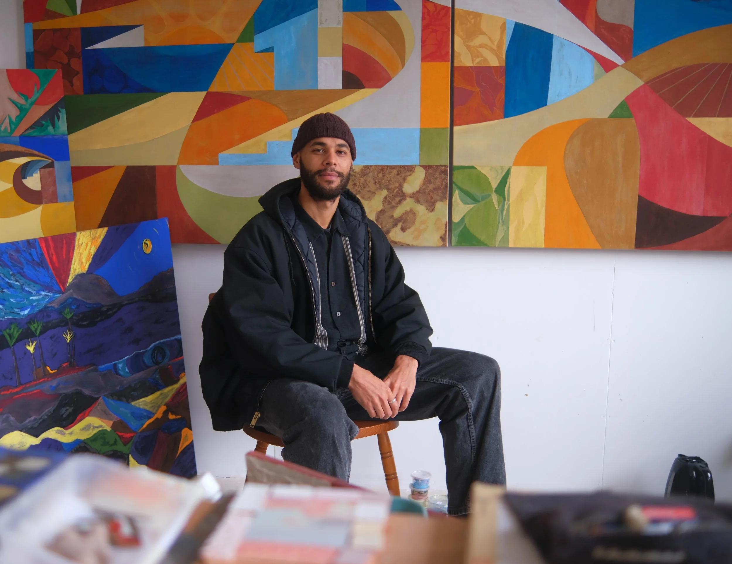 Daniel Dzonu-Clarke is a British-Ghanaian artist based in London whose work explores the meeting point between the urban and the natural, transforming architectural and everyday spaces into abstract, dreamlike landscapes. Working across paper, canvas, textiles, and ceramics, Daniel combines fragments of the man-made environment with organic gestures, capturing the energy of lived experience through layered compositions informed by his deep connection to London’s textures and forms.